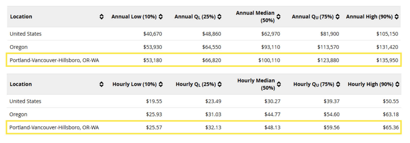 According to O*NET, Plumbers in the Portland Metro Area have high earning potential on average, per the following localized wage ranges (based on data from the U.S. Bureau of Labor):
